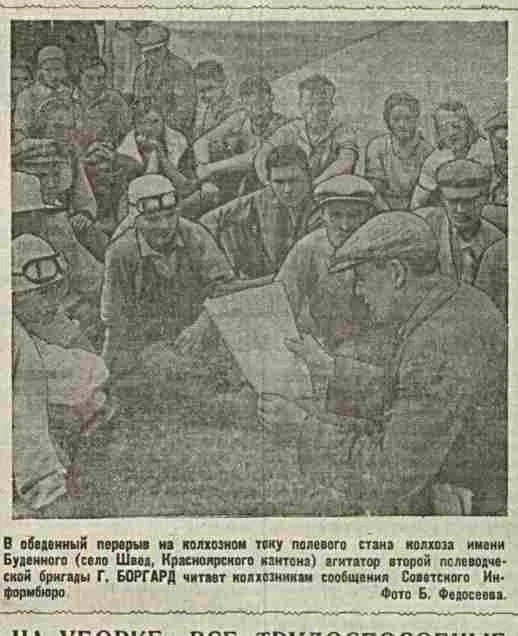 Колхозники села Швед, Красноярского кантона республики Немцев Поволжья обратились с воззванием к немецким крестьянам.